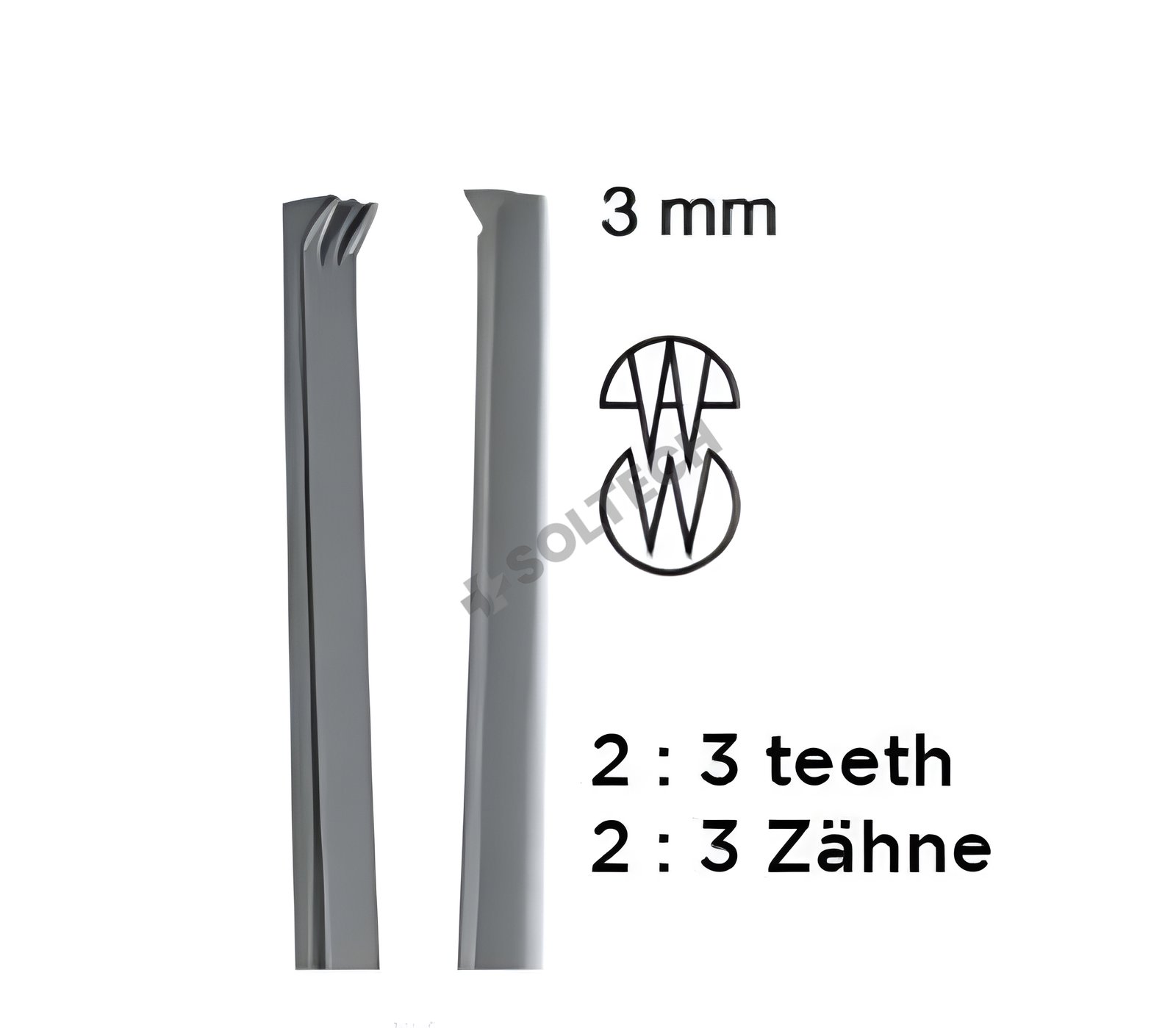 - 3 mm tips with 2:3 teeth